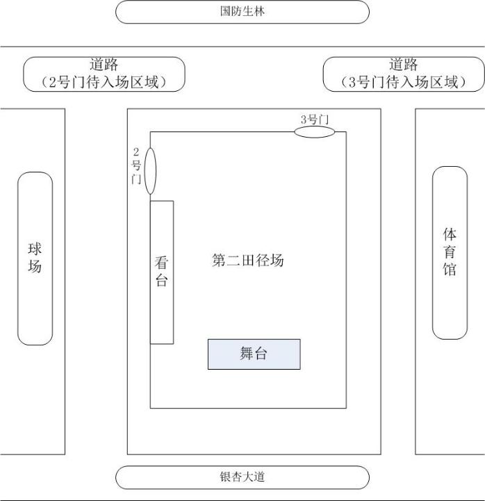 2.各单位组织参会人员在场外指定区域(附件3)集合,整队完毕后,由本单位负责教师带队从指定的通道,按照规定时间有序进入会场就坐。