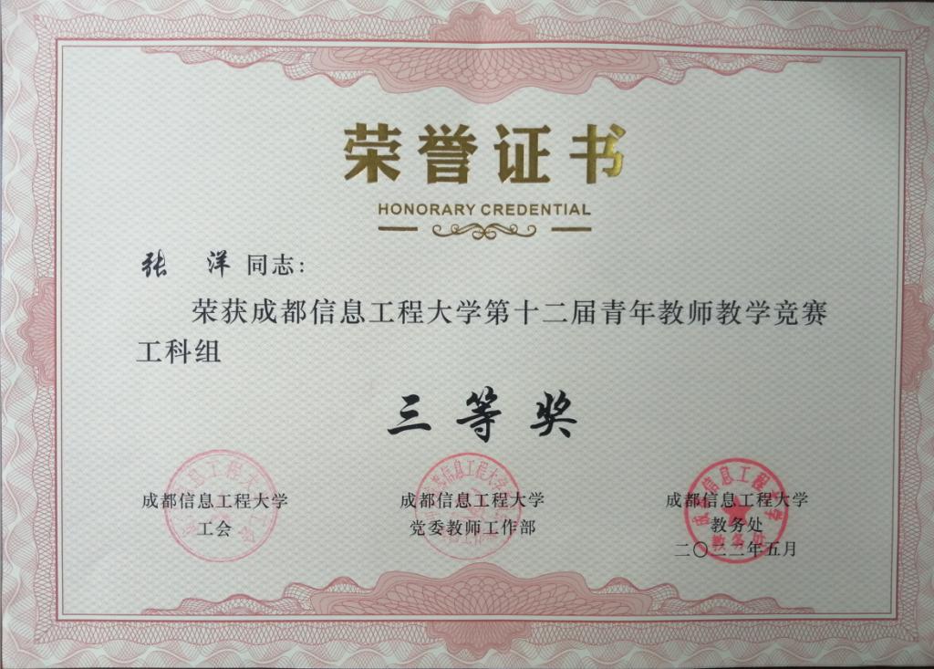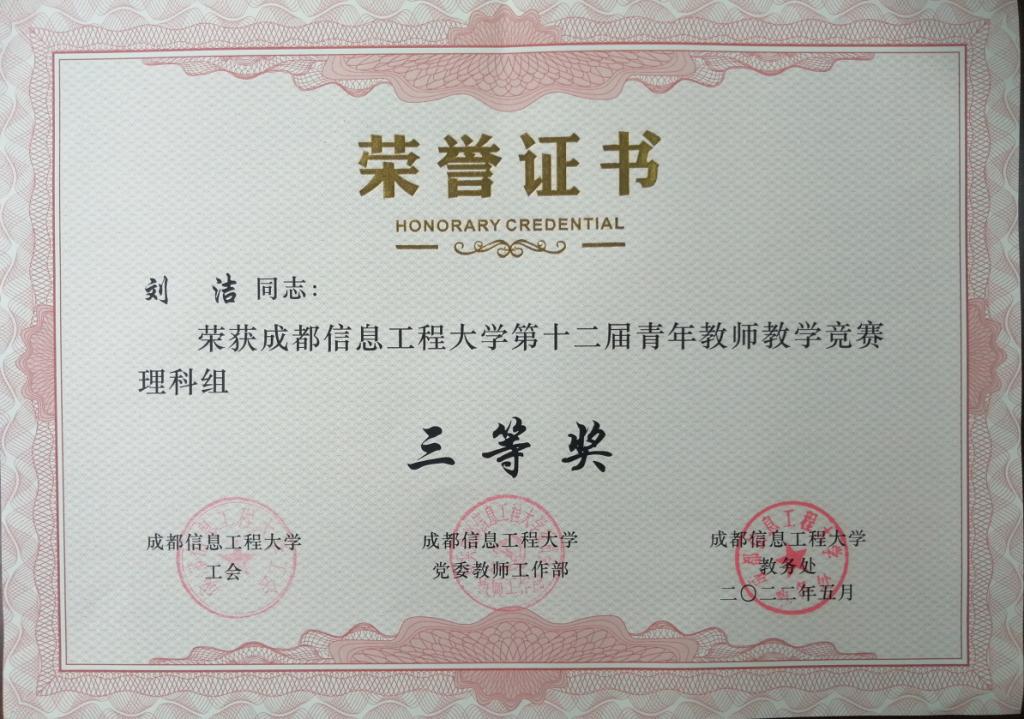 热烈祝贺我院刘洁老师、张洋老师荣获我校第十二届青年教师教学竞赛三等奖。