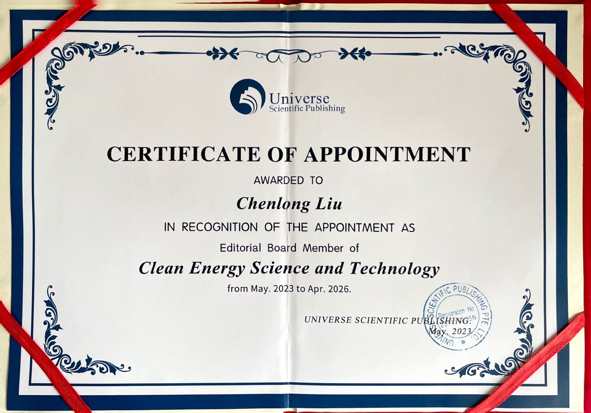 【科研荣誉】热烈祝贺我院教师刘晨龙担任《Clean Energy Science and Technology》期刊编委