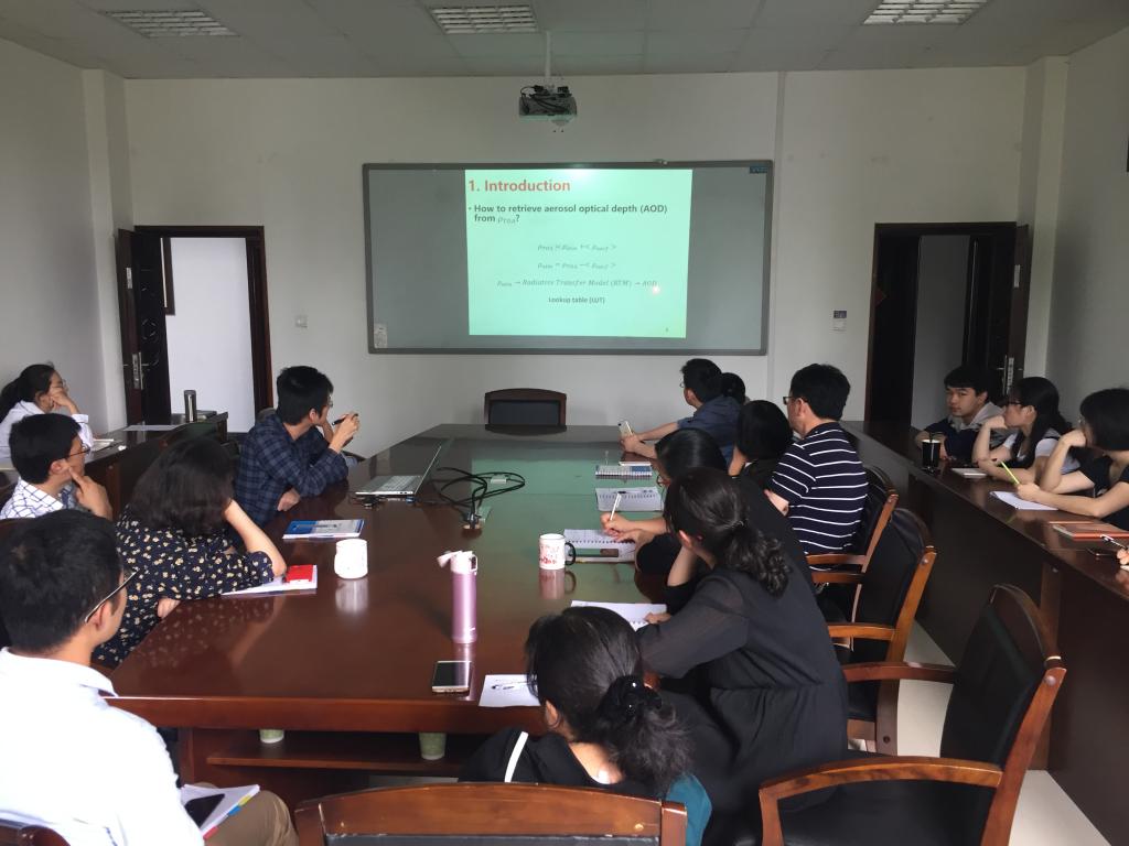 2019年5月14日中午,Betway体育西汉姆联教师及研究生参加了第五期沙龙。由张洋老师为大家讲述题为“Retrieval of Aerosol Optical Depth Using the Empirical Orthogonal Functions (EOFs) Based on PARASOL Multi-angle Intensity Data”的研究。张老师从传统卫星遥感平台反演气溶胶光学厚度的局限入手,展开介绍了多角度遥感反演气溶胶光学厚度的方法与优势。主要讲到了利用经验正交函数这一多维数据分析工具估算地表反射率的方法,并展示了基于此得到的中国地区气溶胶光学厚度反演结果。相关的验证工作表明反演结果与地基测量结果有高度一致性,该方法亦可为我国高分五号相关载荷的气溶胶反演算法提供基础支撑。