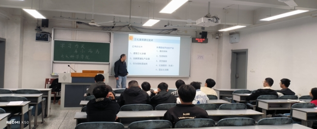 谭老师在讲座中首先以三七渣和肾宝药渣的成分作为引入,引发了同学们的兴趣。随后,他介绍了多种中药渣资源化技术,如饲养动物、制作有机肥料等,并分享了自己在实验中的经历和体会。通过这些详细的案例和经验分享,同学们对中药渣的资源化利用有了更全面的了解,同时也提升了专业知识水平。