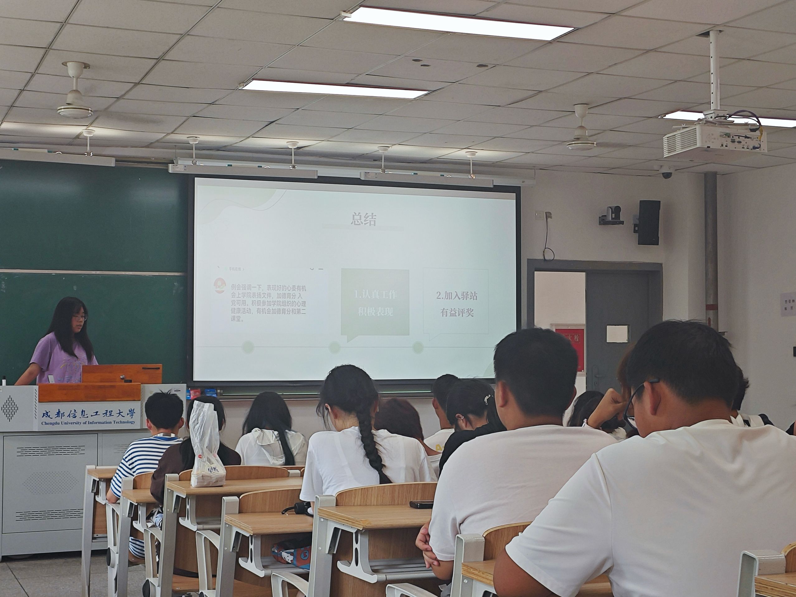 本次会议由三部分组成。首先由姚莉向24级心理委员介绍了学院心理委员和心晴驿站在学院心理健康工作中的关系,并布置了心理委员本学期的工作内容。每名心理委员除需提交一篇心理推文,组织开展一次心理健康主题班会,还需与班上每位同学进行至少一次的心理谈话。通过这些基础工作,心理委员在丰富自己心理健康方面知识的同时,也能更好的了解本班同学的心理动态,与同学们建立起良好的人际关系,有利于学院后续心理健康活动的开展。其次,22级心理委员钟雨欣为心理委员们讲解了“全国百佳心理委员”的评选要求和准备工作,并鼓励各班心委积极组织参与心理健康工作,为以后评选积累更多素材,这也让心理委员对自己的工作充满信心和动力。通过本次会议,鼓励各班心理委员以及心晴驿站干事们携手推进学院各项心理健康工作,帮助同学都能拥有一个积极的大学生活,营造良好的校园氛围。